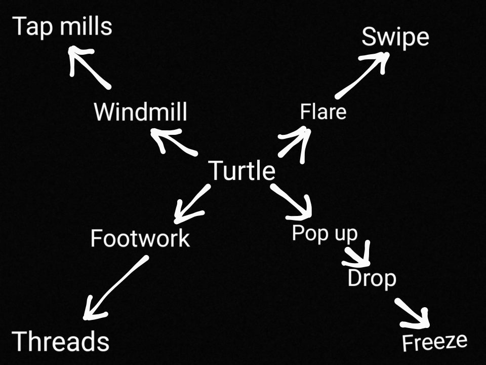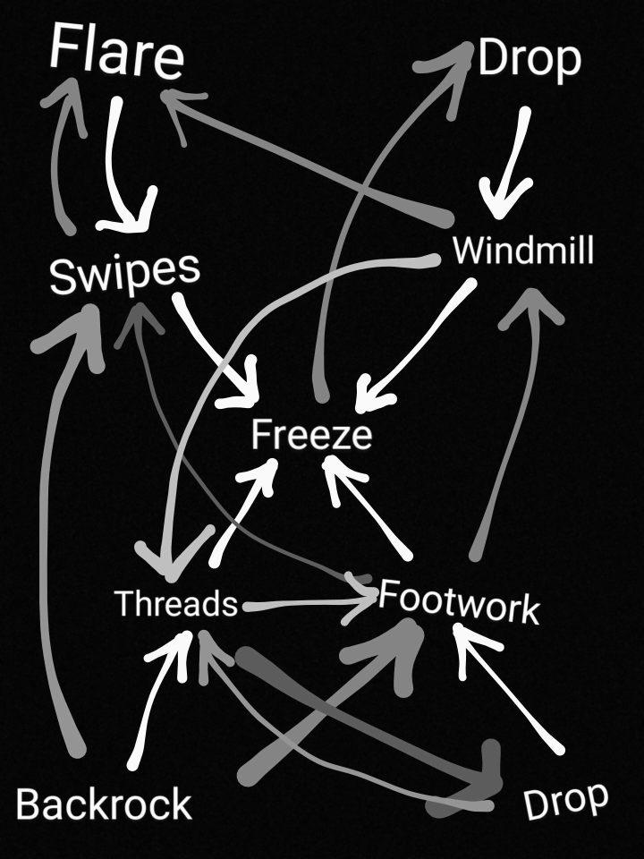 This is a basic framework with general concepts, and it's organized like a quick-reference where you can skim, jump around with the back to top // page index tool, or cross-reference with your own external research. Breaking does not have a codified naming system like ballet, but the names and terms provided on this page are accurate to the degree of consensus available.